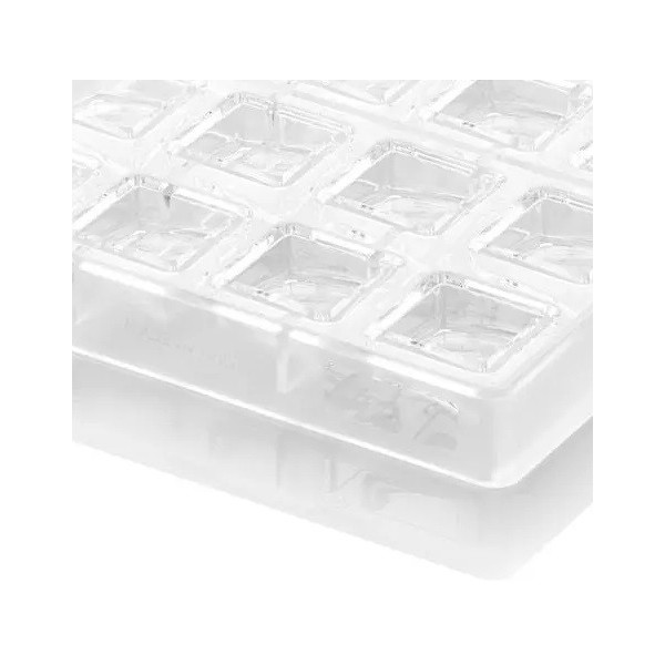 Cubo 01 P Silikomart: stampo tritan, CH029 della linea Chocado, per 24 cioccolatini a forma di cubo di dimensioni 2,1x2,1xh2,1 cm e volume 8,5 ml.