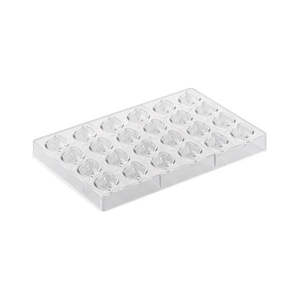 Riflesso P CH039 linea Chocado Silikomart: stampo cioccolatini in Tritan per 24 praline di cioccolato, suddivise per la lunghezza in due parti simmetriche un lato liscio e uno il riflesso texturizzato.