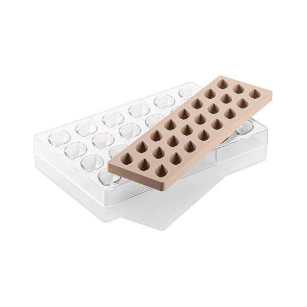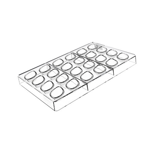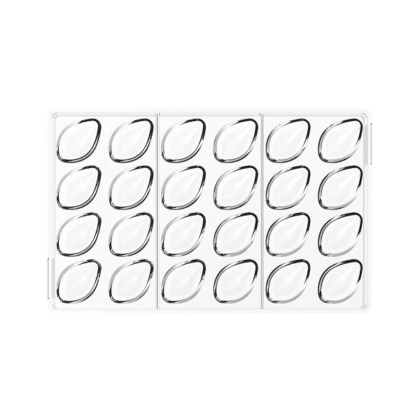 - CH038, stampo Tritan a forma di quenelle, per 24 praline 42x26 mm ed alte 17 mm e volume 8 ml,