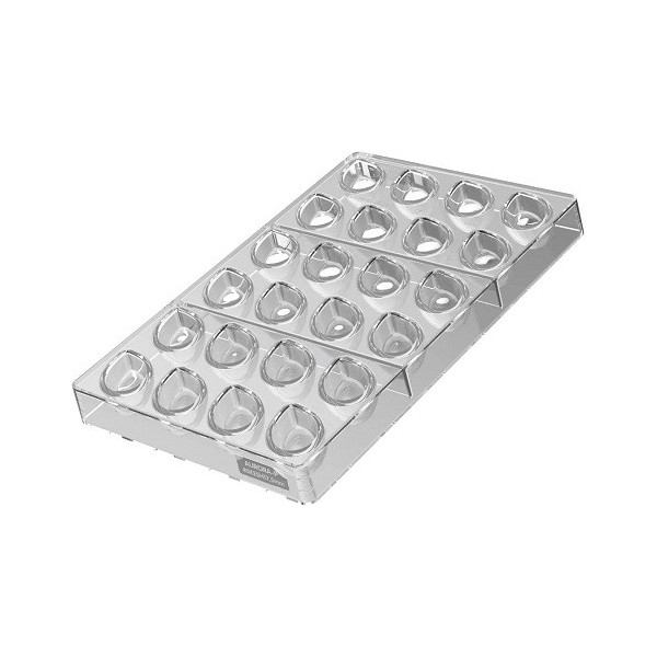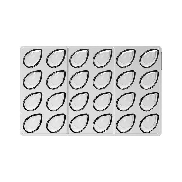 Stampo cioccolato goccia tridimensionale: stampo in policarbonato per 24 cioccolatini a forma di goccia tridimensionale da 8 g, di diametro 23 mm e h 32 mm.