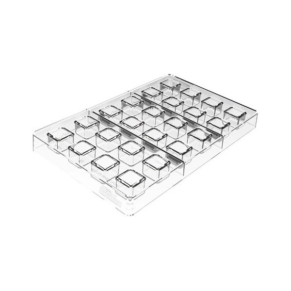 Le cavità dello stampo cioccolato, in policarbonato, Quadro 01 P, di Silikomart, ha la forma e misura del classico cioccolatino cremino (forma quadrata di dimensioni 2,5x2,5 h1,5 cm), quindi puoi usarlo anche come stampo cioccolato cremino.