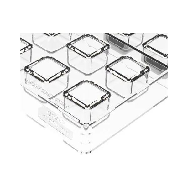 Cubo 01 P Silikomart: stampo tritan, CH029 della linea Chocado, per 24 cioccolatini a forma di cubo di dimensioni 2,1x2,1xh2,1 cm e volume 8,5 ml.