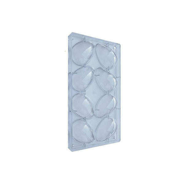 Stampo uovo 60 / 70 g con 8 impronte: stampo in policarbonato professionale, per uova di pasqua di cioccolato da 60 / 70 g, con 8 impronte di altezza 100 mm e larghezza 66 mm