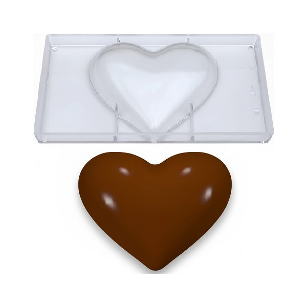 Stampo policarbonato Cuori Grandi di Cioccolato: scegli tra stampo cuore di 10 cm da 3 cavità, stampo cuore di 12 cm da 2 cavità o stampo cuore di 16 cm da 1 cavità