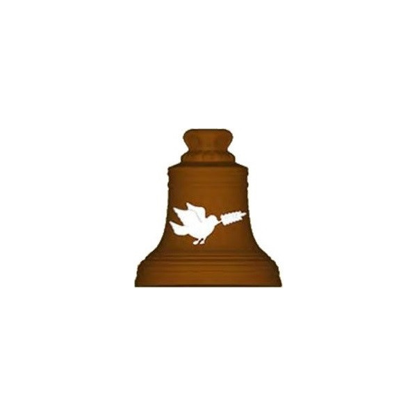 Piccola campana di cioccolato da 50 g ø7xh8 cm: stampo, in policarbonato professionale per uso intensivo, forma di campana di cioccolato con decoro uccello con ramoscello di ulivo, ideale monoporzione di cioccolato per pasqua