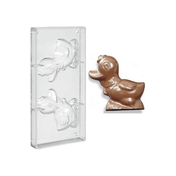 Stampo  papero 100 g, stampo in policarbonato a forma di papero di cioccolato Papero di cioccolato da 100 g: stampo in policarbonato con 2 cavità a forma di papere alte 9,9 cm Stampo  papero 100 g, stampo in policarbonato a forma di papero di cioccolato Stampo  papero 100 g, stampo in policarbonato a forma di papero di cioccolato