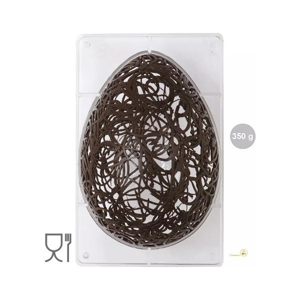 Caratteristiche stampo per uovo di pasqua da 350 g in policarbonato professionale per cioccolato da Decora: