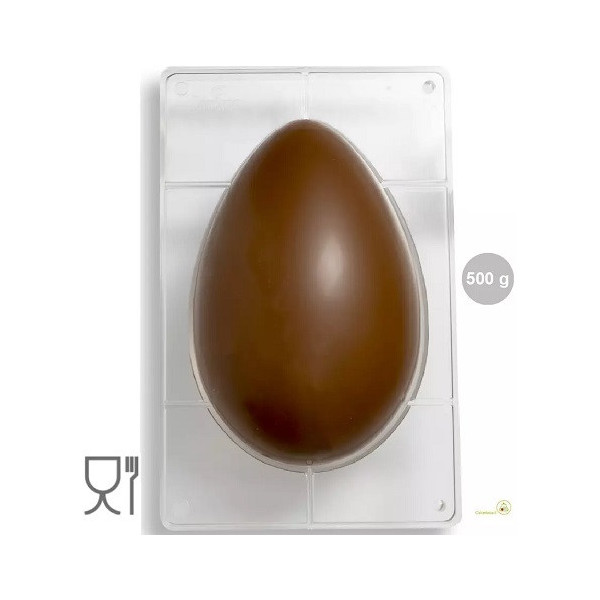 Caratteristiche stampo per uovo di pasqua da 500 g in policarbonato professionale per cioccolato da Decora: