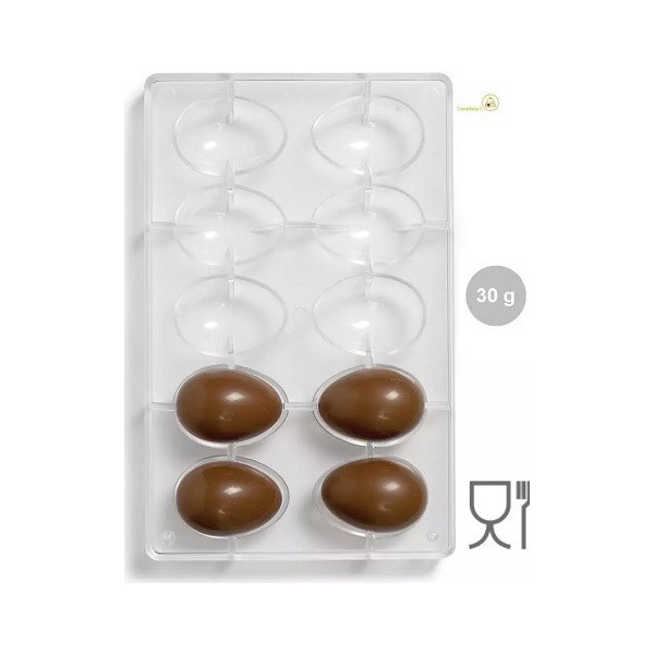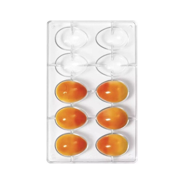 Lo stampo in policarbonato professionale, specifico per uso intensivo, vi permetterà di realizzare degli ovetti di cioccolato nel modo più preciso.