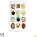 Kit Stampo termoformato per 12 uova decorate: stampo semi rigido in APET, per 12 cioccolatini o praline a forma di uova di pasqua di cioccolato decorate + 40 bustine e 40 adesivi.