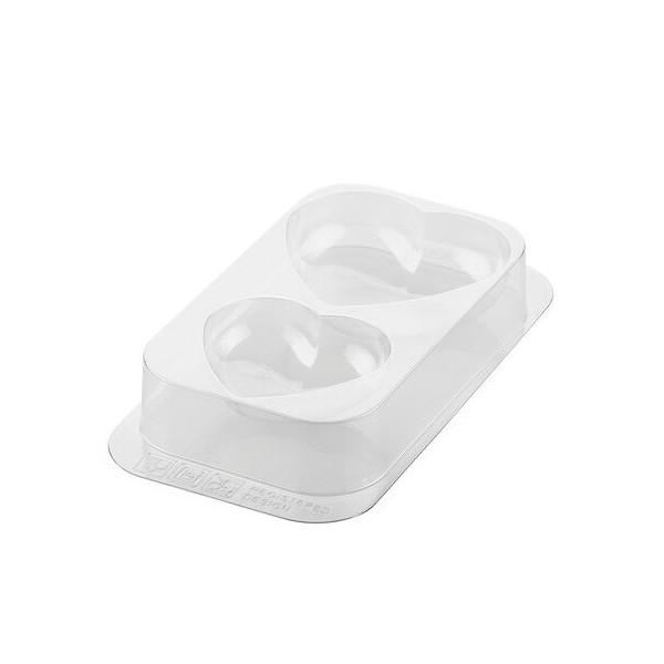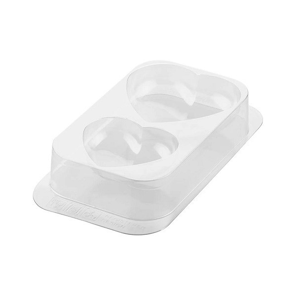 Il kit di 2 stampi in plastica morbida termo-formata a forma di cuore: 1 stampo per la parte frontale di entrambi i cuori ed 1 stampo per il retro di entrambi i cuori .