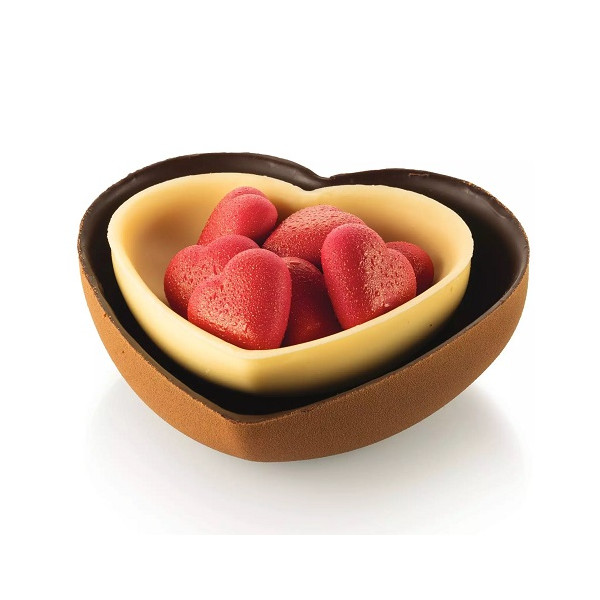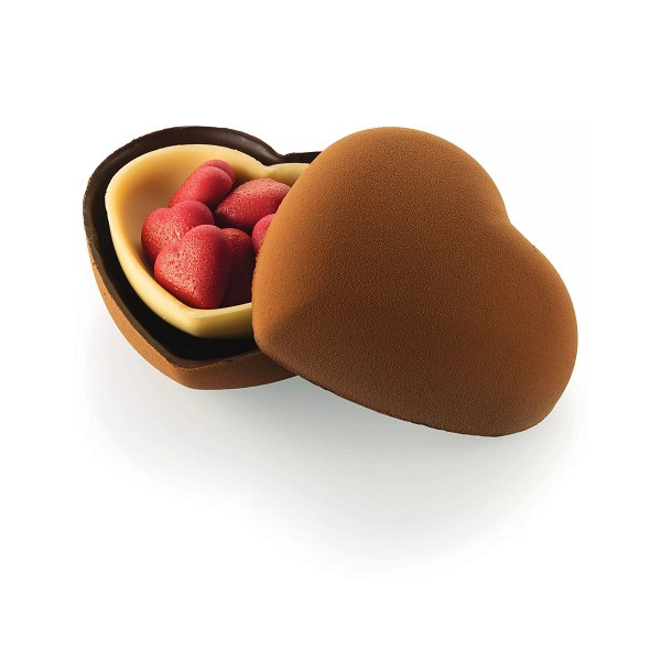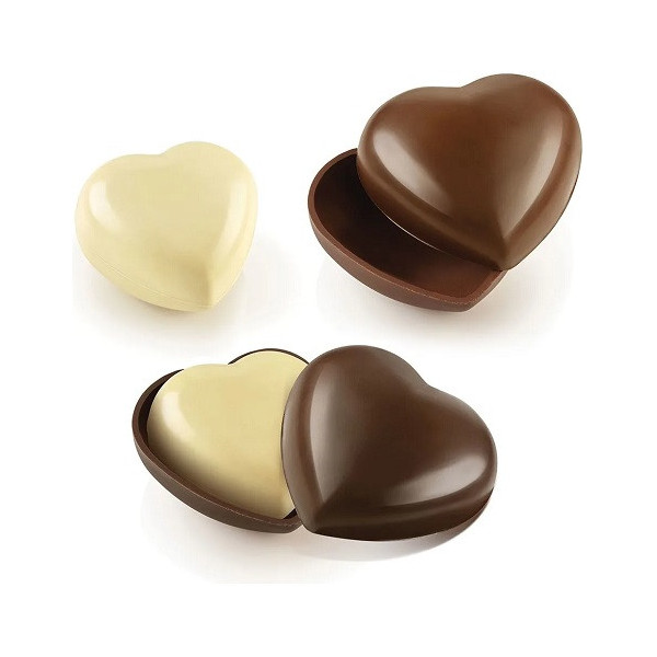 Secret Love Silikomart: kit 2 stampi in plastica morbida termo-formata per realizzare 2 cuori in cioccolato di 3 dimensioni, da 12,3 o 93 cm ideali per due cuori per racchiudere un amore segreto San Valentino.