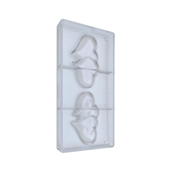 Stampo policarbonato 2 cuori cioccolato bacio innamorati 12x7 cm da 95 g