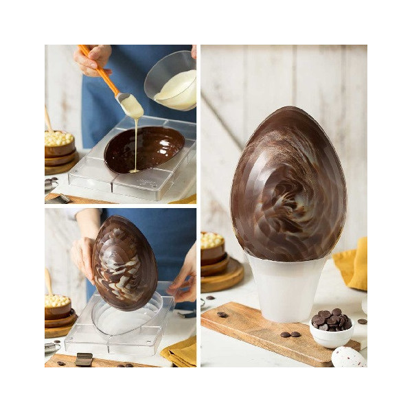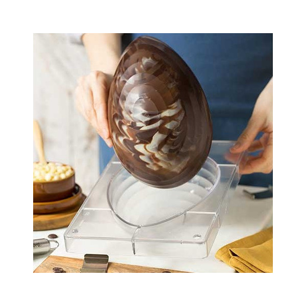 Stampo uovo rigato da 250 a 500 g di Decora: stampo in policarbonato professionale per cioccolato, con 1 impronta, per uova di pasqua da 250 a 500 g, con superfice rigata