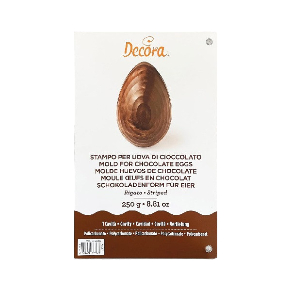 Stampo uovo rigato piccolo 250 g da Decora: stampo in policarbonato professionale per cioccolato con 1 impronta