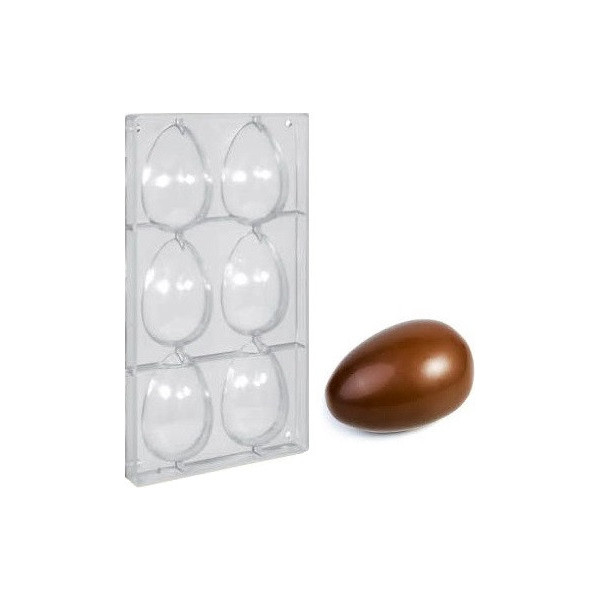Stampo uovo 70 / 80 g con 6 impronte: stampo in policarbonato professionale, per uova di pasqua di cioccolato da 70 / 80 g, con 6 impronte di altezza 105 mm e larghezza 70 mm
