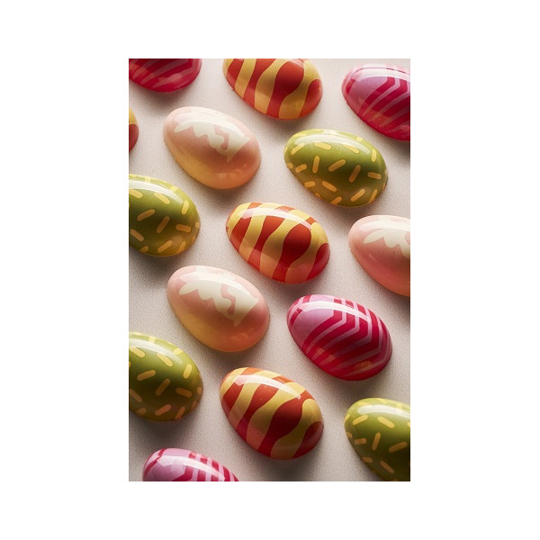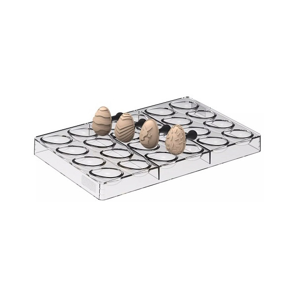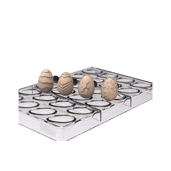 - stampo Uovo 01-P, in Tritan con 24 cavità professionali a forma di uova di cioccolato di dimensioni 40×28×H14mm,