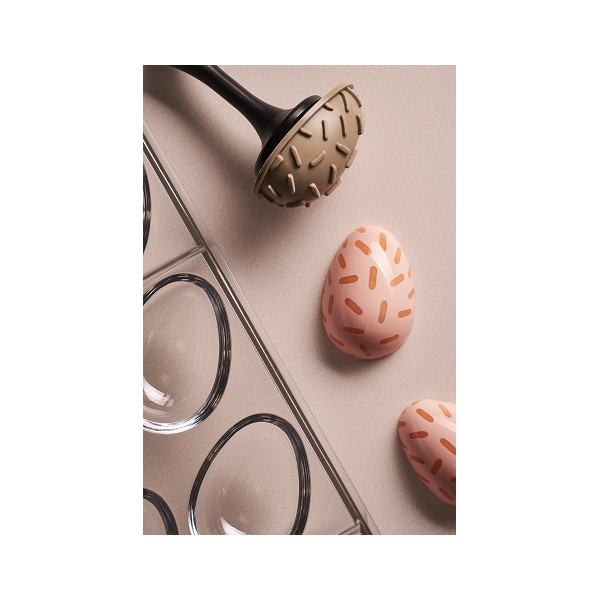 Choco stamp B Silikomart: set 4 timbri specifici per decorazioni professionali per uova di cioccolato di di dimensioni 40×28×H14mm decorate a temi Pasquali.