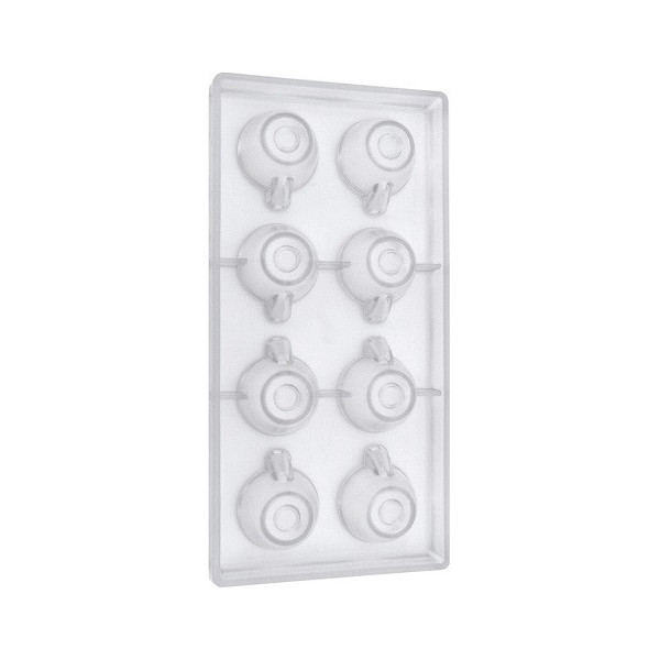 Stampo in policarbonato professionale vi permetterà di realizzare dei cioccolatini a forma di tazzine caffè o tazze da the nel modo più preciso.