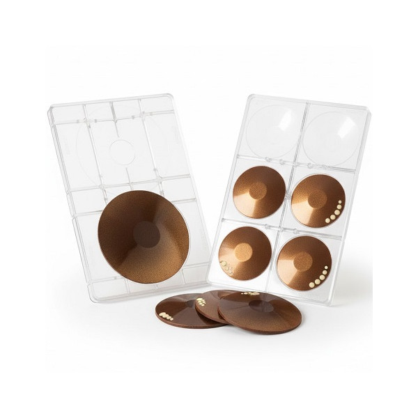 Stampo in policarbonato professionale vi permetterà di realizzare dei piatti tondi di cioccolato nel modo più preciso. Stampo pratico da usare grazie alla forma brevettata dello stampo che permette la presa dello stampo con un unica mano.