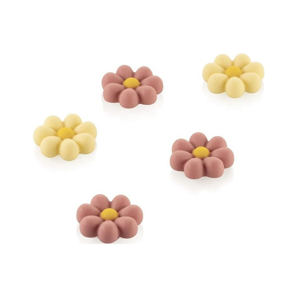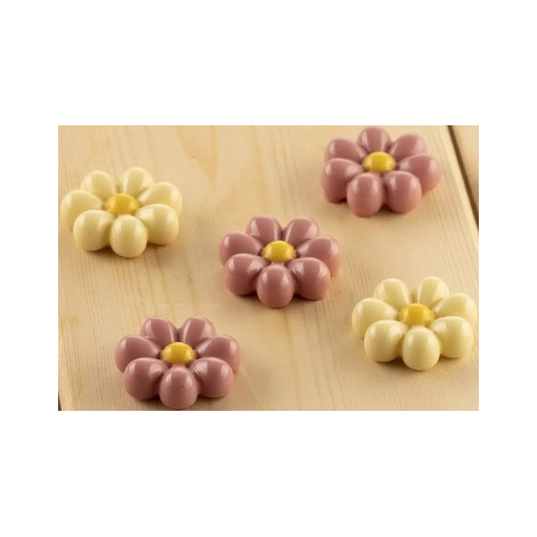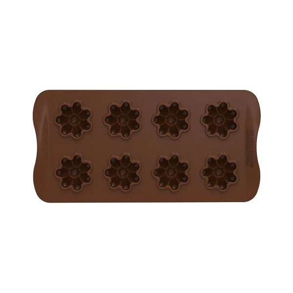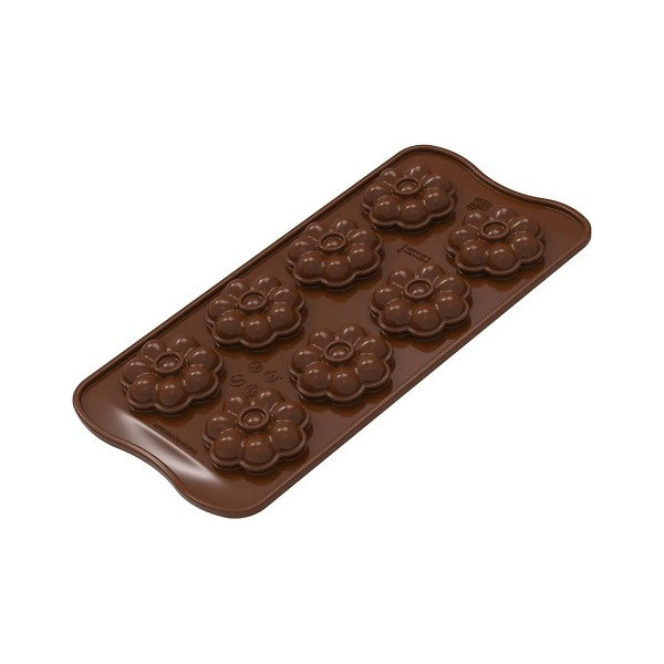 Flower Silikomart: stampo in silicone marrone per 8 cioccolatini a forma di margherita di ø38xh12 mm.