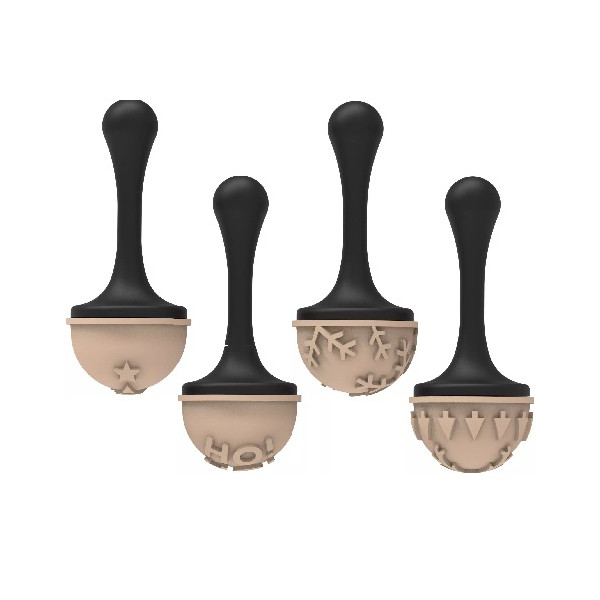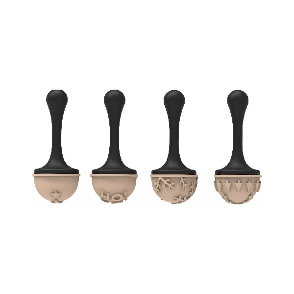 Choco stamp B Silikomart, in collaborazione con Lluc Crusellas: set 4 timbri, manici con stampi silicone, con design diversi, specifici per decorazioni professionali, a temi natalizi, di sfere di cioccolato di ø31 mm.