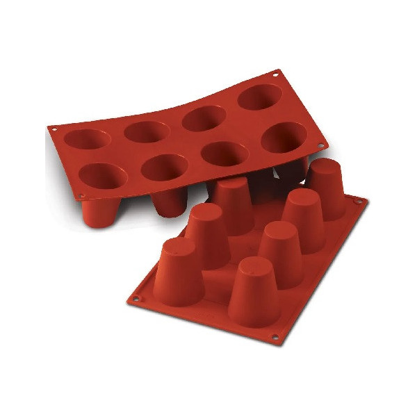 Stampo 15 babà piccoli SF019 di ø3,5x3,8 cm o SF020 11 medi di ø4,5x4,8 cm o SF021 8 grandi di ø5,5xh6 cm, in silicone flessibile e antiaderente color terracotta da Silikomart