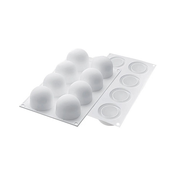 Truffles o tartufi 70 o 120 ml: stampo in silicone, per 8 semifreddi o dolci a forma sfera, tagliata alla base, della linea Top White effetto 3D di Silikomart