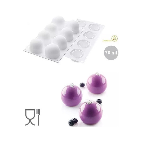 Stampo Truffles o tartufi ideale per semifreddi e preparazioni forno per 8 dolci a forma sfera tagliata alla base, dome o cupola.