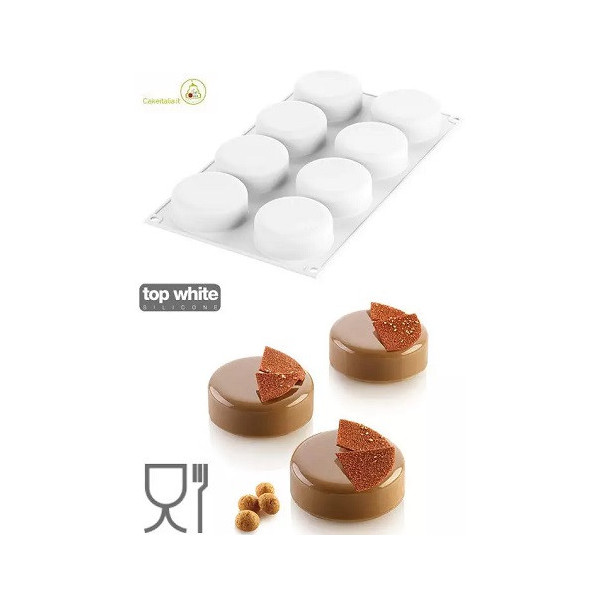 Essenziale 80 Silikomart: stampo tondo in silicone bianco per semifreddi monoporzioni ø65h25 mm