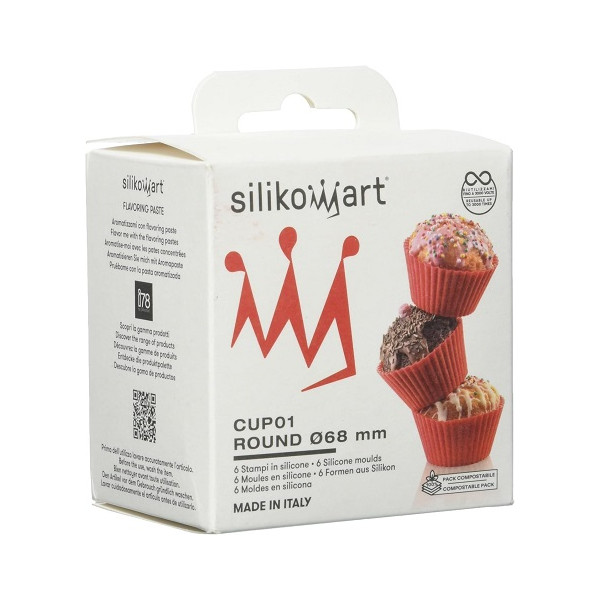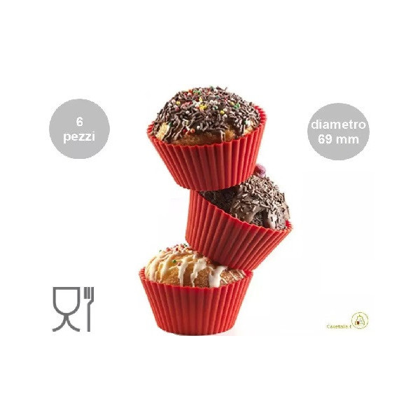 Set 6 pirottini Muffin Silikomart: confezione da sei stampi tondi in silicone, per monoporzioni di ø68xh32 mm, ideali pirottini tondi rossi riutilizzabili per muffin