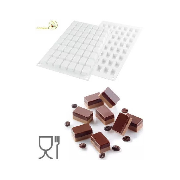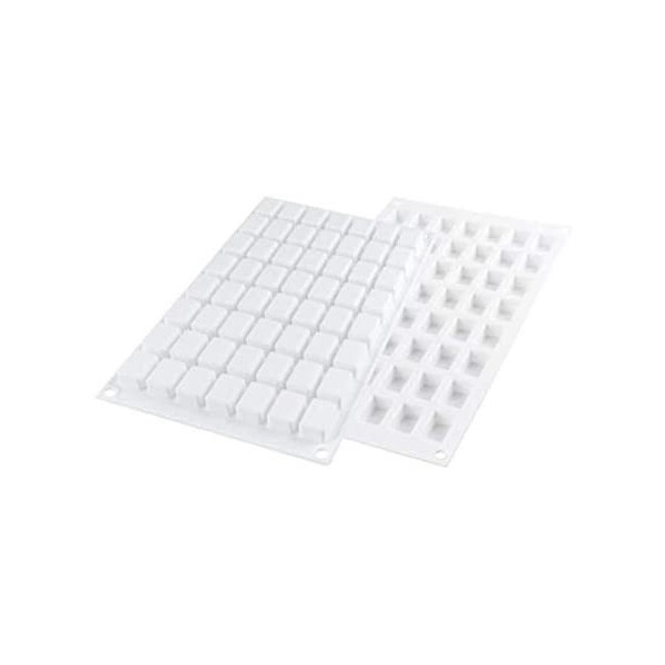 in generale per 56 dolci rettangoli, lunghezza 2,6 cm, larghezza 1,6 cm ed altezza 13 mm, linea Top White di Silikomart.