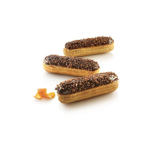 L'innovativo stampo microforato è in silicone e fibra di vetro, per Eclair lunghi 125 mm, larghi 25 mm ed alti 5 mm.