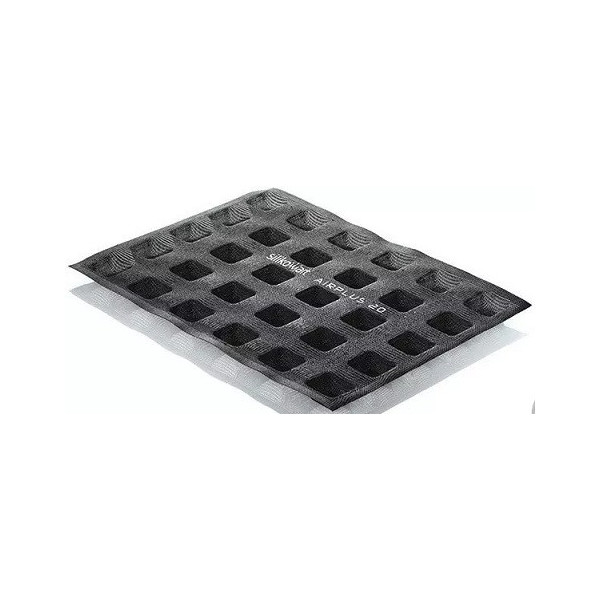 Gli stampi Air Plus Square della Linea professionale di stampi AIRPLUS "Microperforated Moulds", grazie alla trama microforata ed al materiale, 100% silicone platinico e alla fibra di vetro sono completamente antiaderenti, permettono una uniforme diffusione del calore ed una perfetta cottura in tempi ridotti.