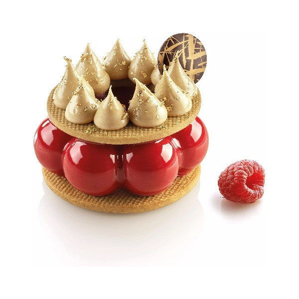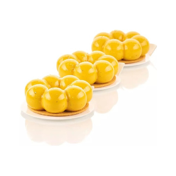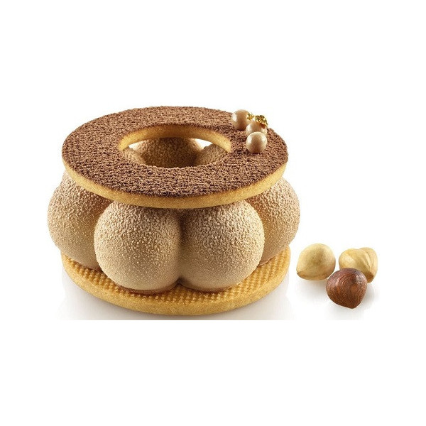 Truffle Crown 90 Silikomart: stampo silicone, della linea Top White effetto 3D, con cutter in plastica, per 6 semifreddi o dolci di diametro 8,2 cm, a forma di corona circolare  di sfere.