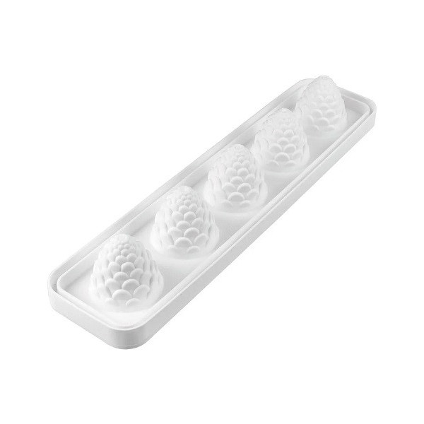 Stampo Foresta e Ananas da 110 ml in silicone, dal diametro 6 cm, altezza 7,3 cm con 5 cavità (linea Top white, effetto 3D) con supporto in plastica per facilitarne l’utilizzo