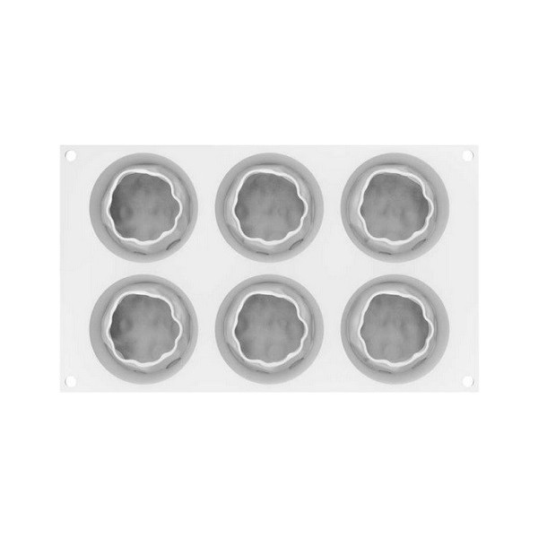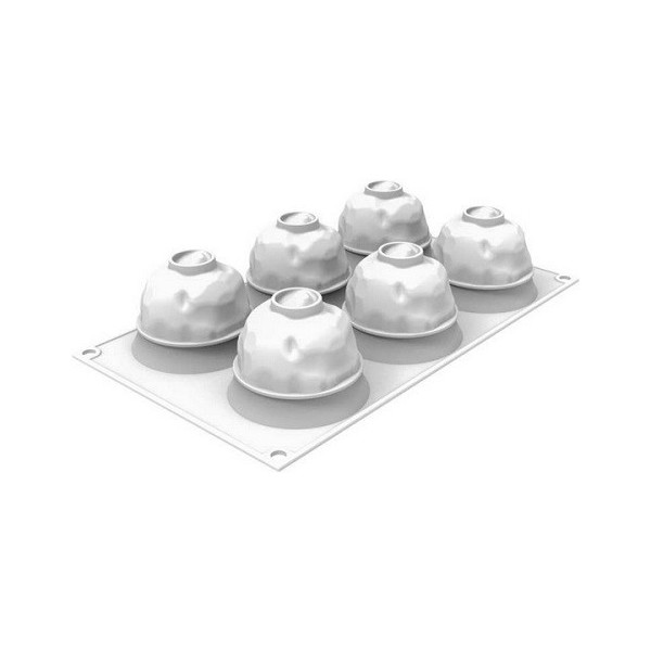 Stampo Supernova per 6 monoporzioni a semisfera, con un delicato decoro in silicone (linea Top white, effetto 3D) di diametro 6,4 cm e 105 ml, ideale per semifreddi, tortine e dolci monoporzioni.