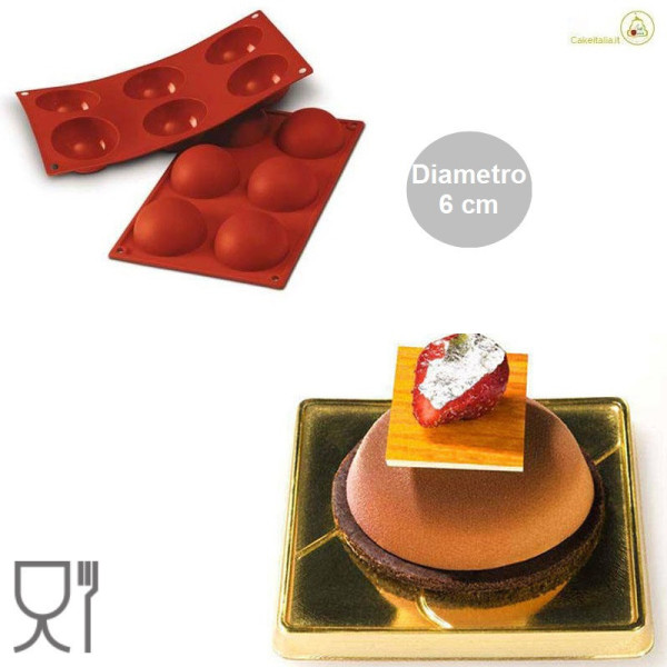 Stampo per la classica forma a semisfera in silicone flessibile e antiaderente realizzato in 100 % silicone liquido da Silikomart. Può essere messo direttamente dal forno al frigorifero e viceversa.