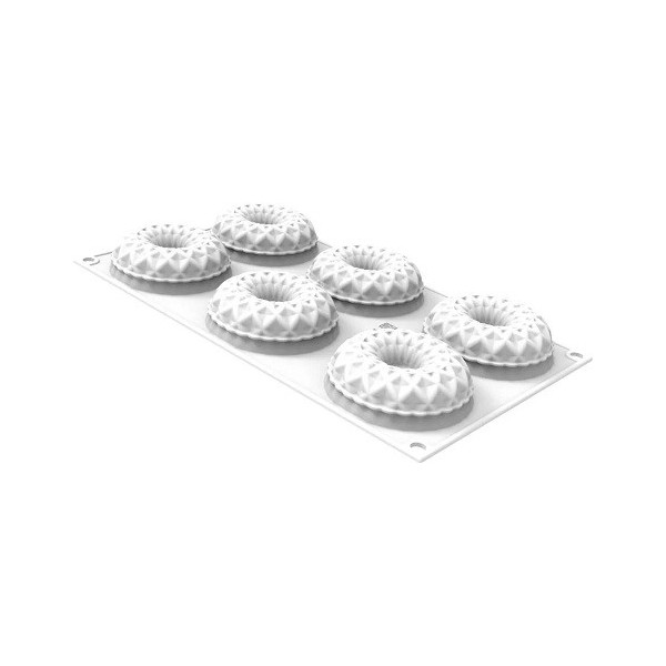 Kaleido 75, in silicone bianco, con 6 cavità a ciambella, da 7,5 xh2,5 cm per realizzare monoporzioni eleganti.