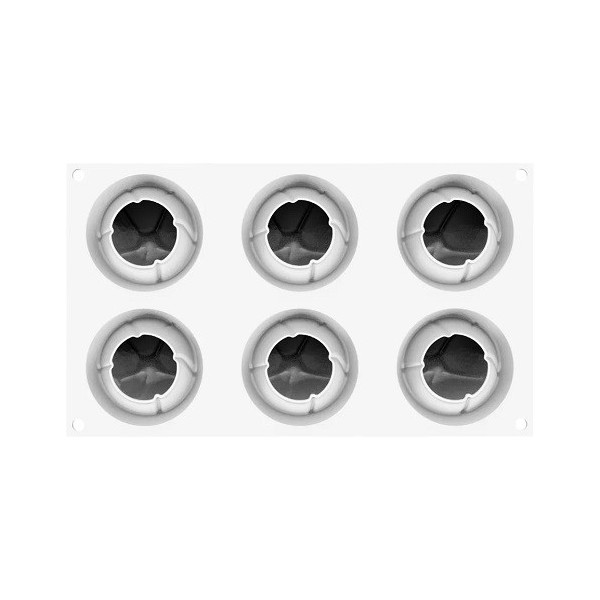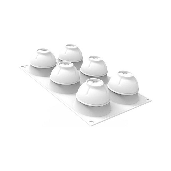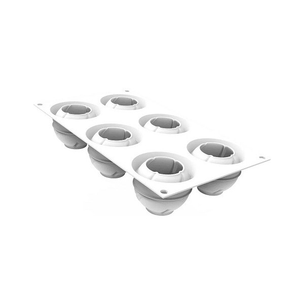 Atomo 120, in silicone bianco, con 6 cavità a sfera 3Da, da 6,3 xh5,5 cm per realizzare monoporzioni dal decoro astratto ed eleganti.