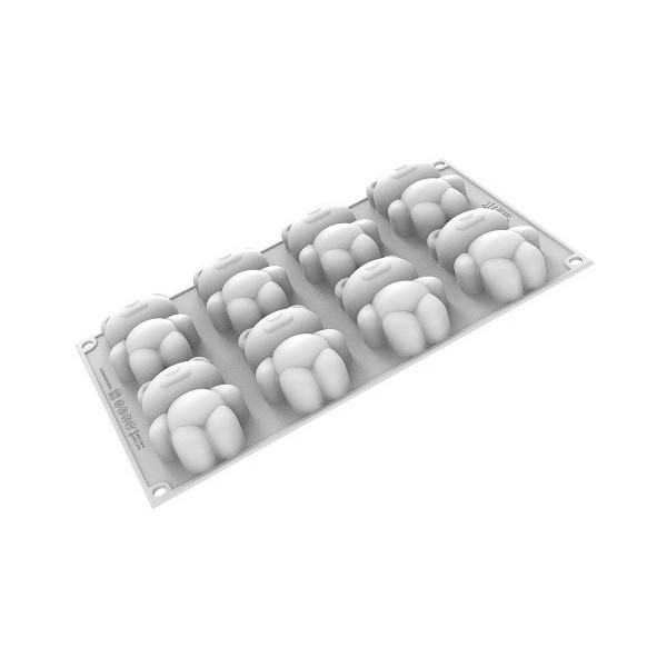 Teddy bear 68 Silikomart: stampo silicone bianco 8 morbidi orsetti di peluche 79x56 h 27 mm, ideale per mousse e semifreddi, per creazioni in cioccolato o per realizzare gli “oursons guimauve”, gli orsetti in marshmallow ricoperti di cioccolato,