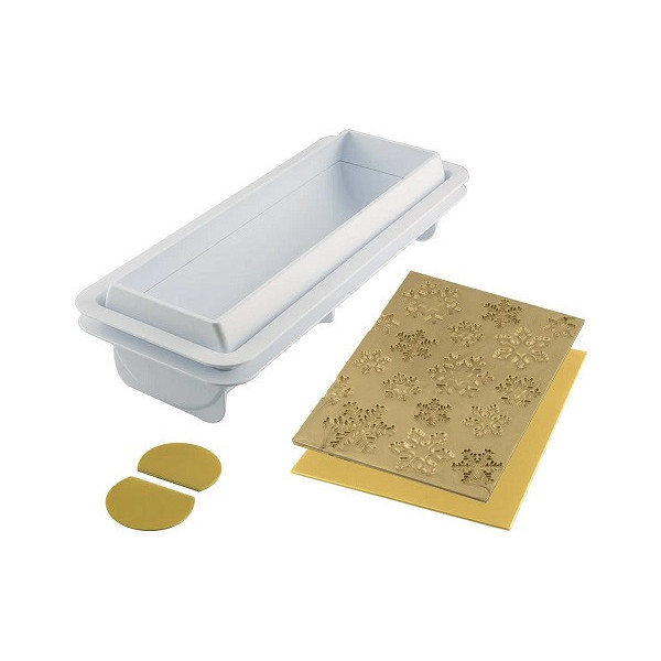 Il kit stampo tronchetto fiocchi di neve o Frozen Bûche è composto da supporto in plastica + tappeti in silicone di Silikomart: