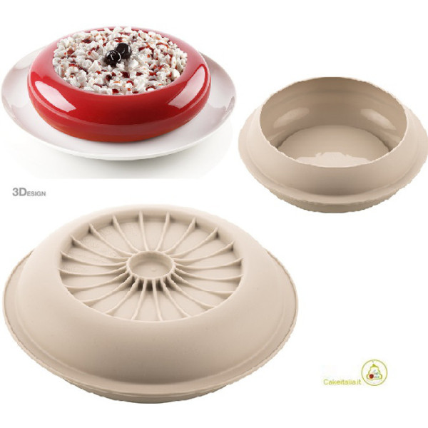 Lo stampo DOT è uno stampo in silicone grigio da Silikomart per tortiere a forma di semisfera liscia troncata in cima, con effetto tridimensionale, dal diametro di 20 cm ed altezza 5,8 cm.
