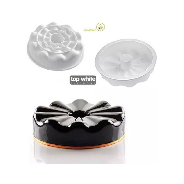 Stampo Armonia 1000 ml di diametro 18 cm, altezza tra 4 cm e 5 cm in Silicone bianco da Silikomart stampo tondo flessibile per semifreddi, torte e dolci.