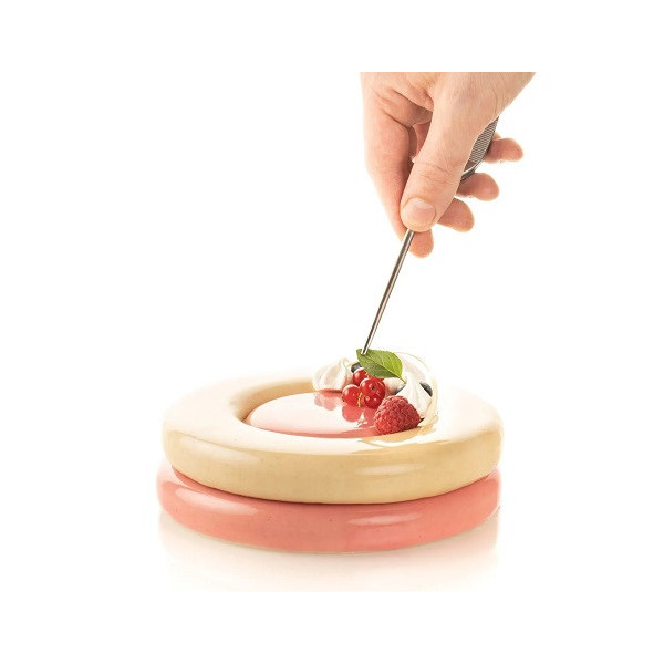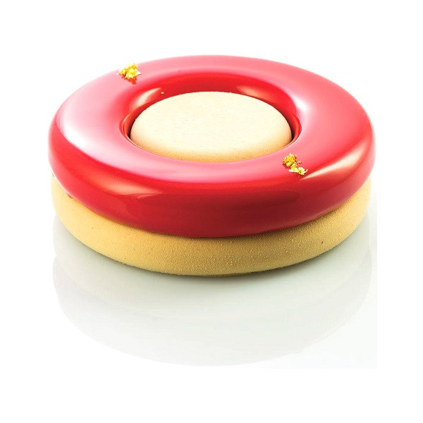 Kit Game 1200 ml per torta tonda ad incastro verticale di diametro 18 cm di Silikomart è composto da due stampi ad incastro in silicone per un effetto di colore e gusto giocoso ed innovativo.