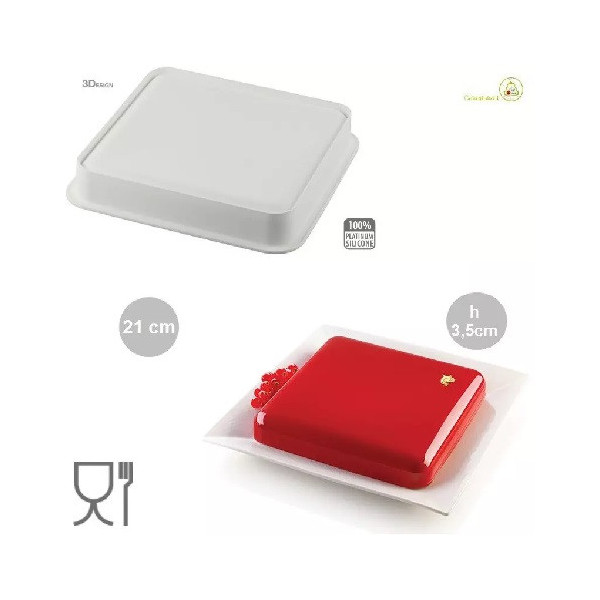 Quadro Silikomart: stampo in silicone grigio platino di lato 21 cm ed altezza 3,5 cm e volume totale 1400 ml. Ideale per semifreddi, mousse e versioni cotte dalla forma quadrata impeccabile.