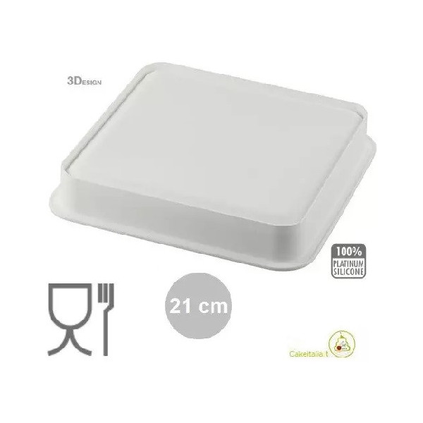 Dimensioni stampo quadrato: lato 21x21 cm ed altezza 3,5 cm