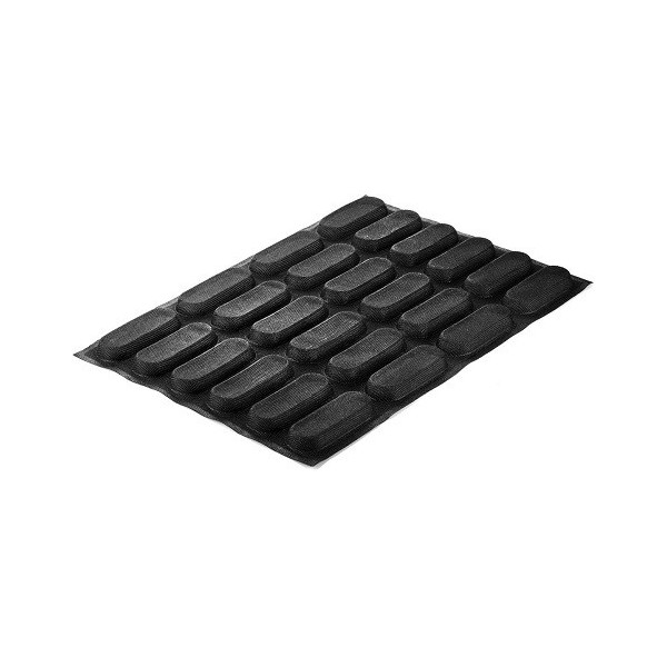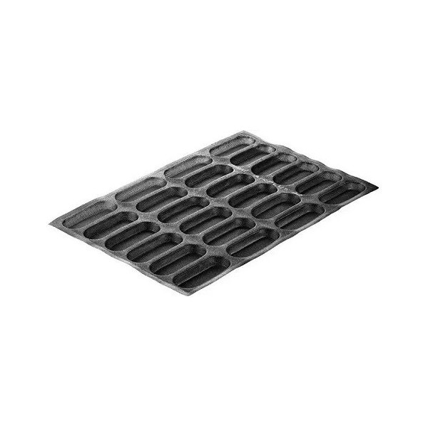 L'innovativo stampo microforato è in silicone e fibra di vetro per baguette medie o impronte sfilate di lunghezza media.