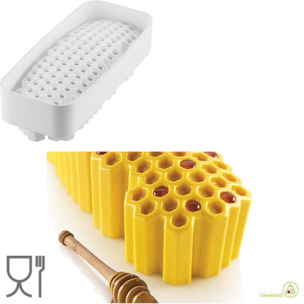 Lo stampo Alveare o Beehive in Silicone è un tronchetto lungo 25 cm, dalle finiture superiori che ricreano le celle esagonali di un alveare. Queste cavità esagonali possono essere riempite a piacimento per un effetto ancora più realistico.