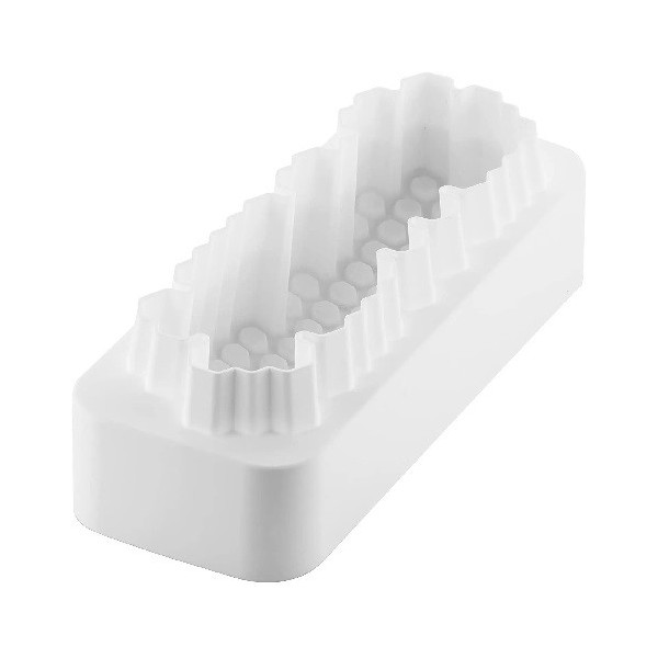 Con lo stampo in Silicone Tronchetto Alveare o bûche Beehive 1100 ml, grazie al bordo arrotondato interno della base, si ottiene un effetto tridimensionale, ideale per preparati semifreddi, torte, dolci e mousse ma anche per preparati in versioni cotte, di Silikomart.